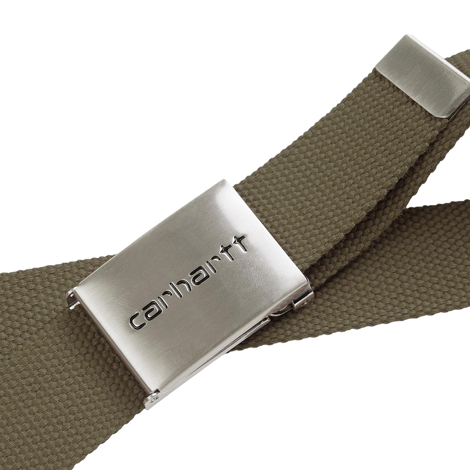La Clip Belt Chrome è realizzata in resistente canvas di poliestere e presenta una fibbia a clip di metallo intercambiabile con marchio Carhartt WIP fustellato a contrasto. Taglia unica. Non contiene nichel.