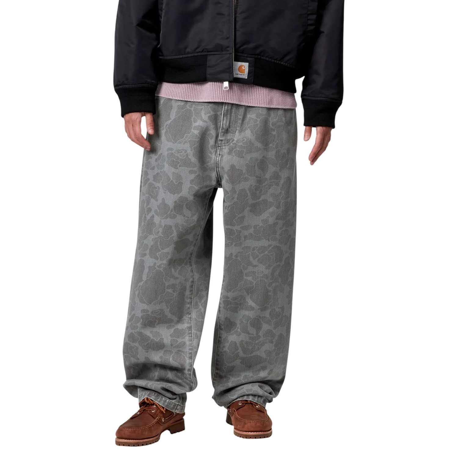 I Duck Single Knee Pant sono realizzati in tela di cotone di medio peso, caratterizzati da vestibilità comoda e affusolata e presentano una stampa mimetica allover. Il modello è stato tinto in capo per una maggiore morbidezza e una colorazione articolata. La tripla impuntura aumenta la resistenza del capo, mentre le tasche porta-attrezzi e il passante portamartello riprendono le caratteristiche funzionali del modello.