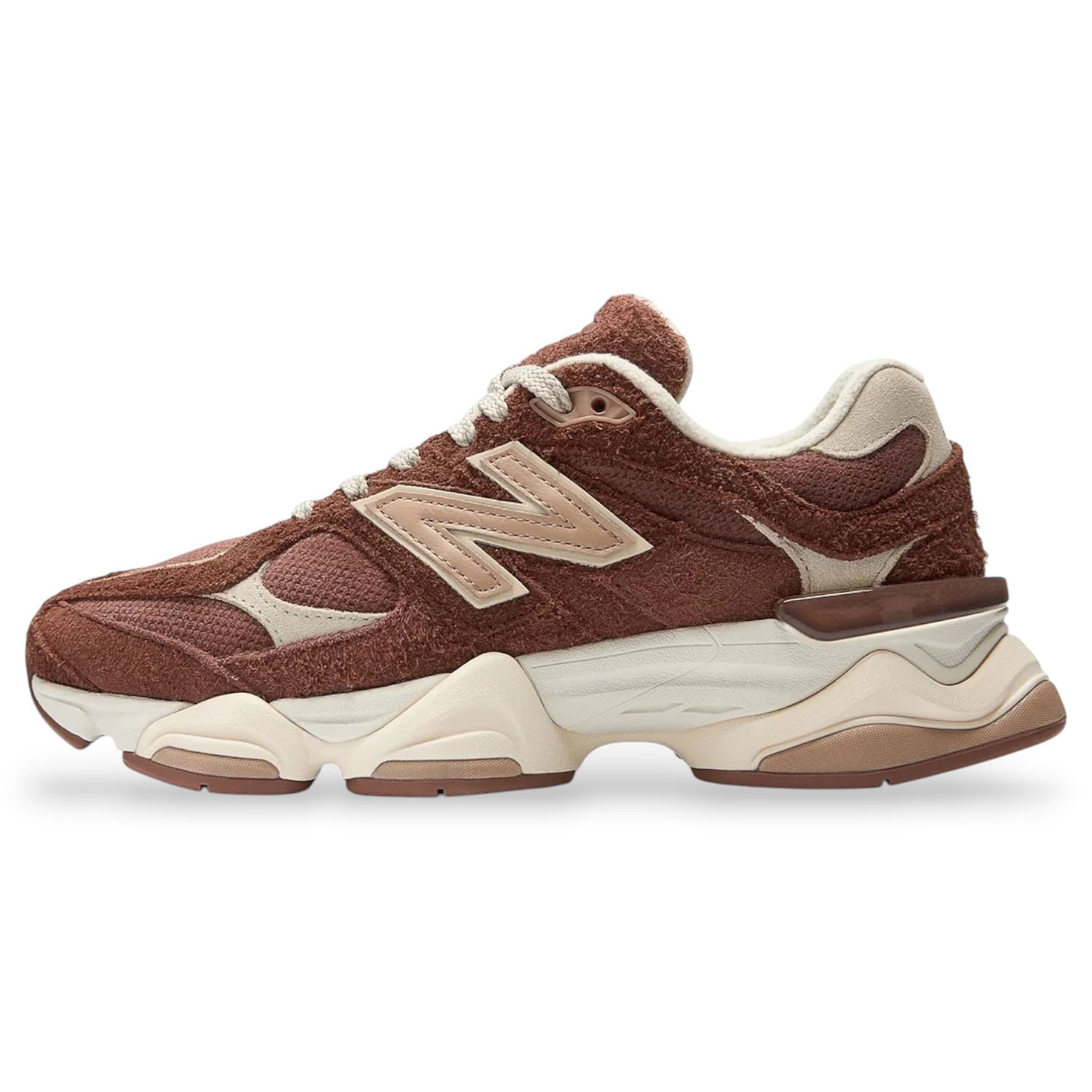 Le 9060 costituiscono una nuova espressione del design innovativo che hanno reso la serie 99X protagonista di alcuni dei modelli più iconici della storia di New Balance. Le barre di oscillazione, riprese dalle 990, sono state ampliate e utilizzate su tutta la tomaia per conferire un senso di movimento visibile, mentre le linee ondulate e le proporzioni scalate sull'intersuola scolpita pongono un'enfasi esagerata sulle note piattaforme di ammortizzazione ABZORB e SBS. Tomaia in mesh con rivestimenti in suede