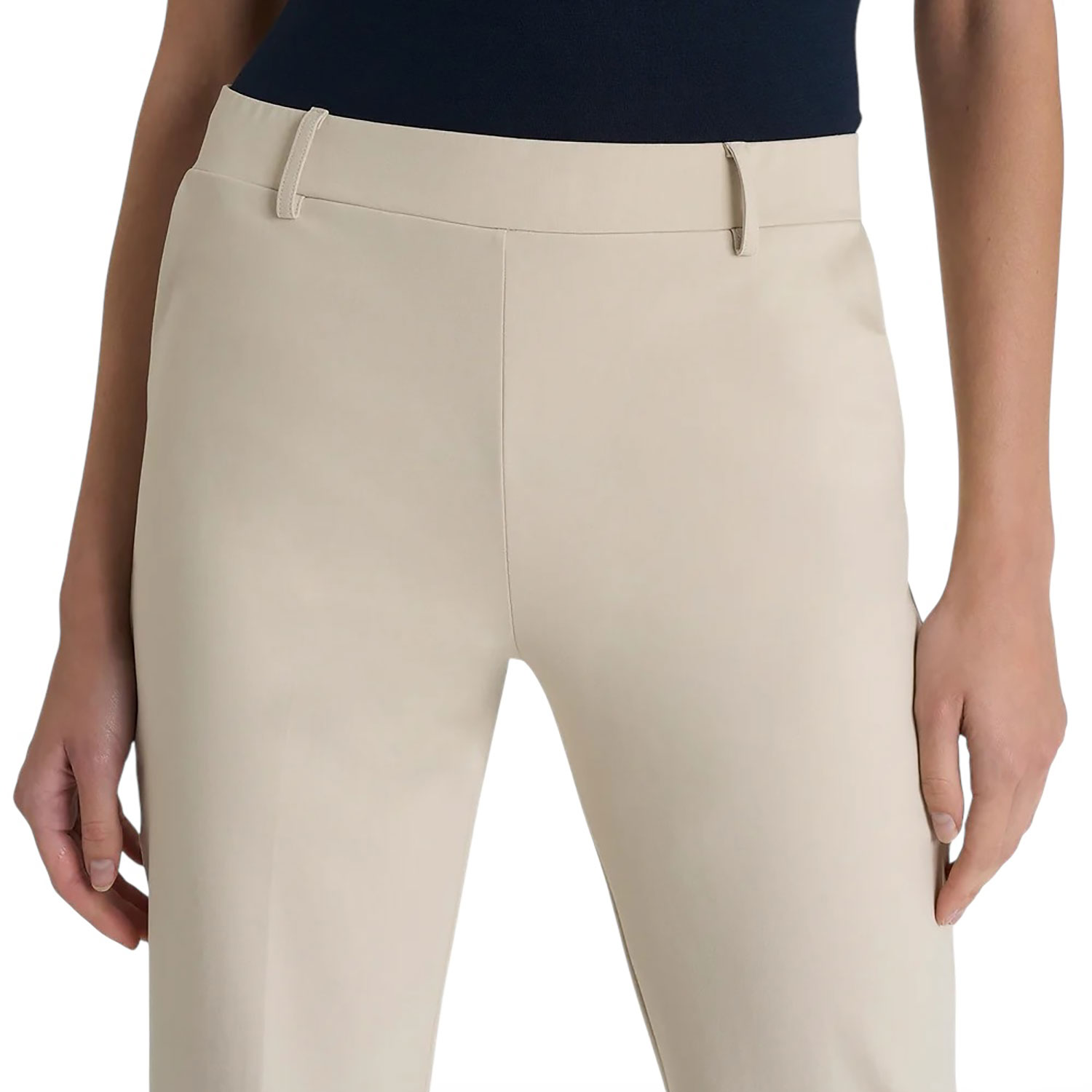 Questo modello è costruito con vita elasticizzata, ma con i passanti per la cintura per permetterti di aggiungere quel tocco di stile in più e con tasche laterali. Comodo come indossare un leggings pur mantenendo l'eleganza di un pantalone. Realizzato in tessuto Compact Light, un tessuto fresco, estremamente compatto, leggero ed elastico per garantire il massimo comfort.