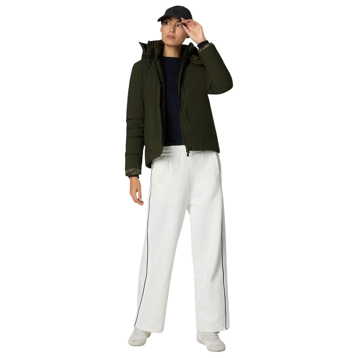 Progettato per affrontare le condizioni meteorologiche imprevedibili, il parka da donna modello Elaine unisce il comfort quotidiano a uno stile animal-free. Realizzato con materiali riciclati, si distingue per la sua silhouette corta a trapezio e il dettaglio della fodera visibile sui polsini. Il modello presenta una zip frontale nascosta da una patta con bottoni automatici, un cappuccio staccabile e tasche laterali con zip.