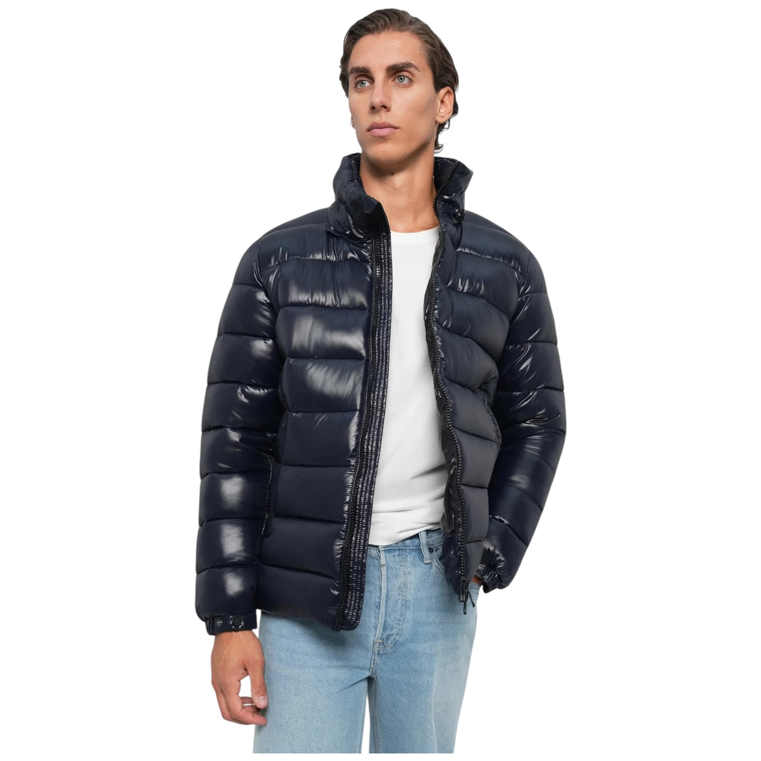 Trapuntato e imbottito, il piumino uomo animal-free modello Florian dà un twist allo stile quotidiano grazie all'originale finitura laqué del tessuto. Dotato di cappuccio rimovibile e regolabile, si distingue per il tirazip personalizzato e il logo tondo sulla manica. La coulisse al fondo e i polsini elastici con bottoni a pressione offrono una vestibilità comoda, mentre le tasche zippate e la tasca interna al petto offrono lo spazio necessario per tutti i tuoi essentials.