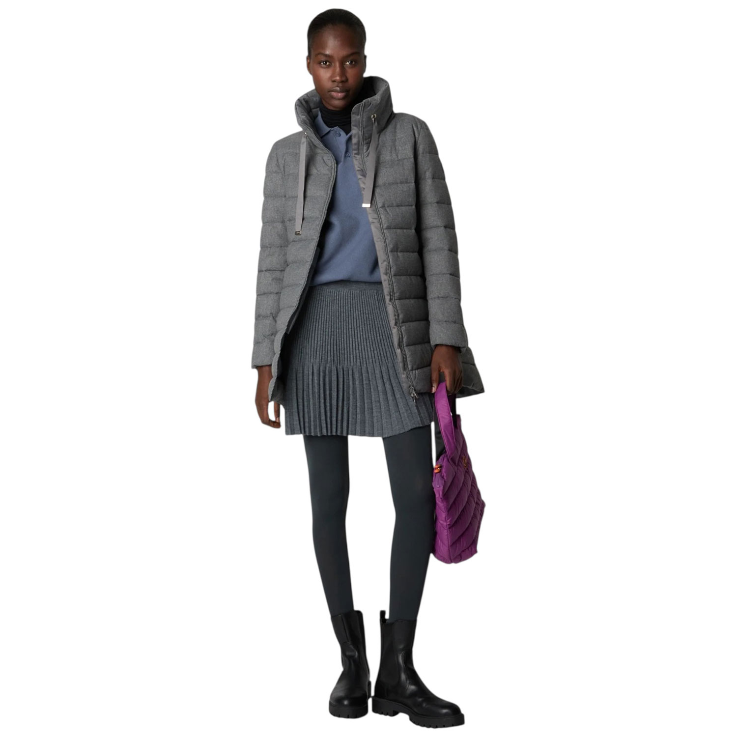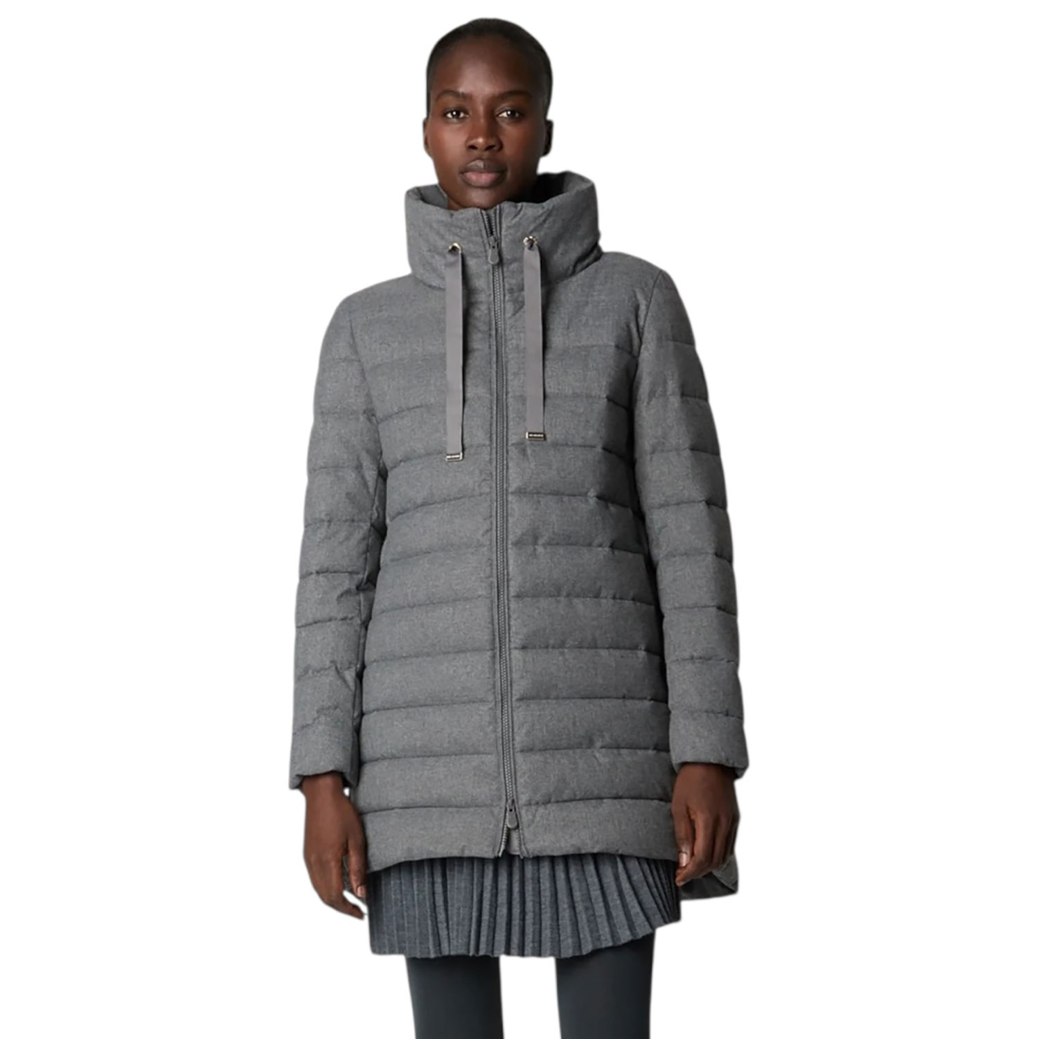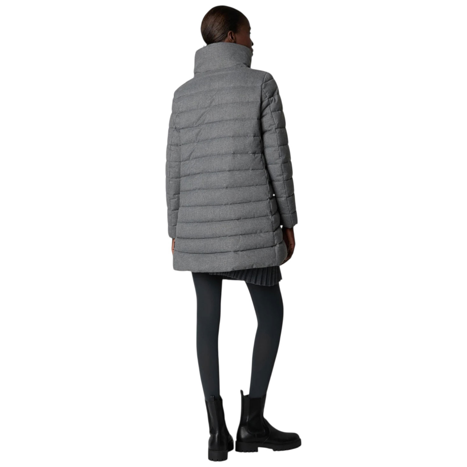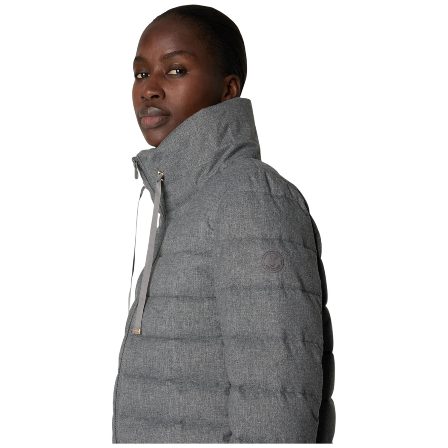 Elegante e caldo, il piumino da donna modello June è realizzato nel nostro nuovo tessuto effetto flanella, morbido al tatto e interamente in poliestere riciclato. La silhouette trapuntata a trapezio presenta collo alto, polsini interni in Lycra e due tasche laterali con cerniera invisibile. Un capo invernale versatile che unisce uno stile senza tempo al comfort funzionale.