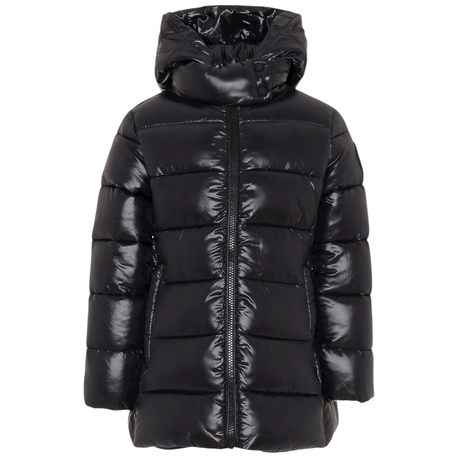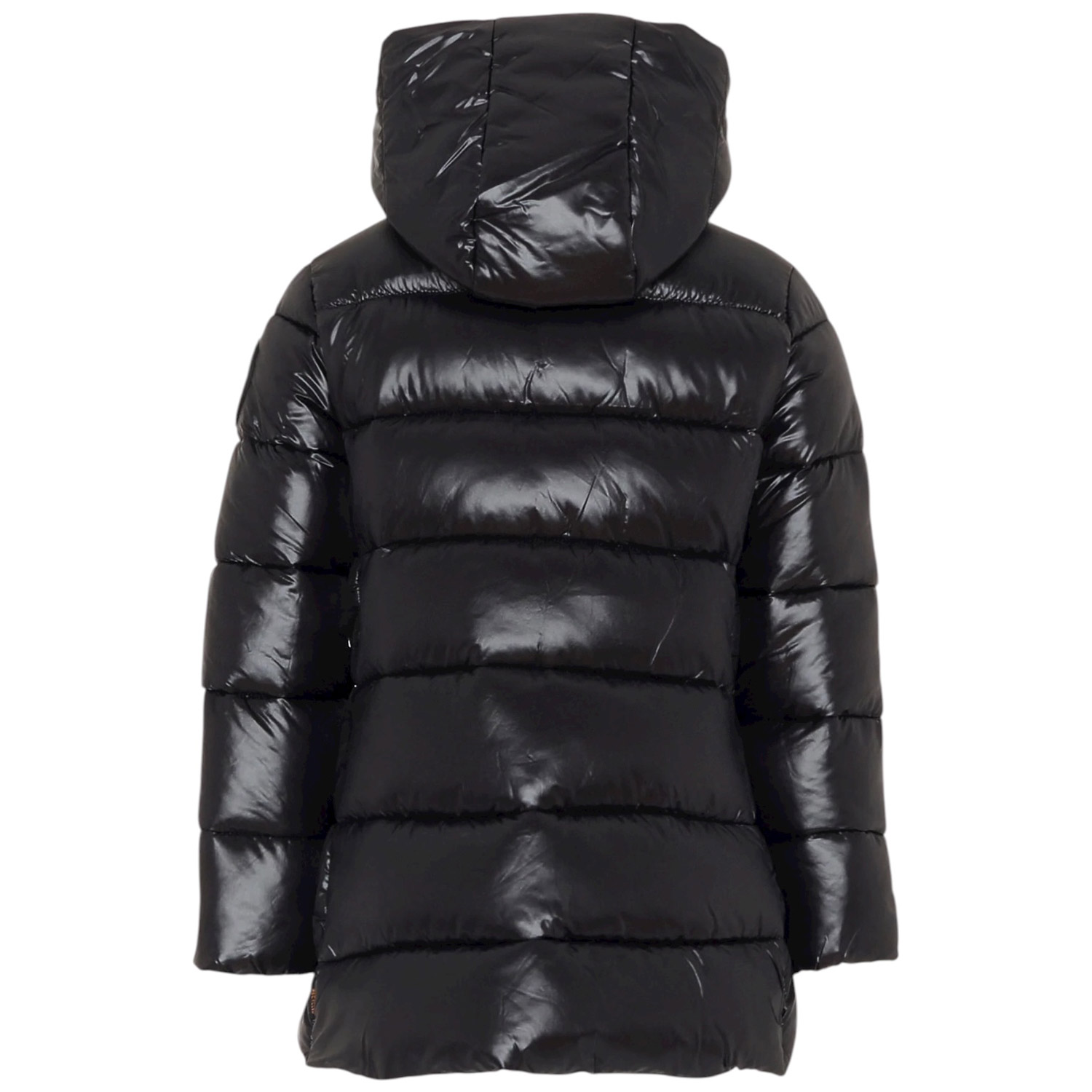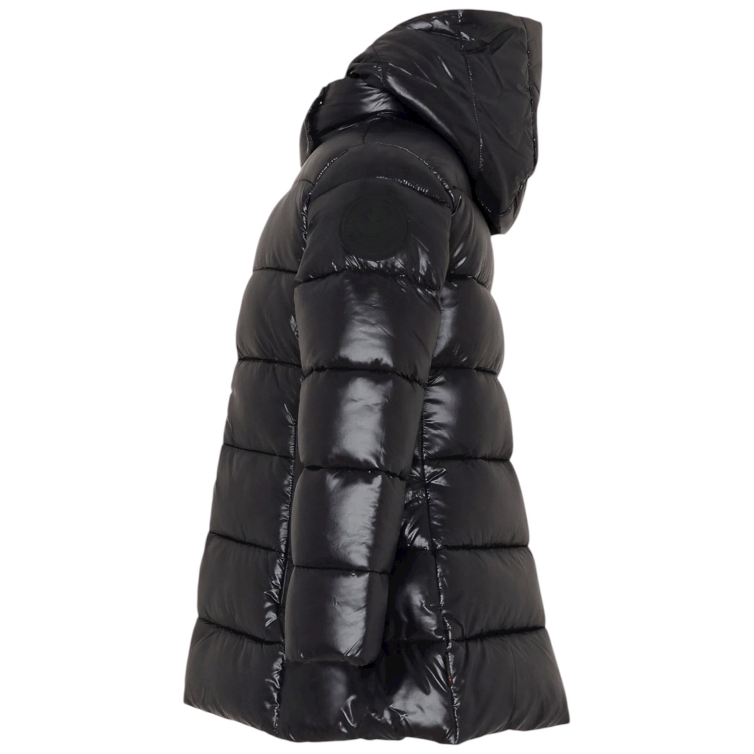 Piumino lungo e pesante, imbottito e trapuntato, a maniche lunghe, con cappuccio, chiusura frontale con zip e tasche laterali con zip; è imbottito con Plumtech, un'ovatta termica sintetica, realizzata nel rispetto dell'ambiente e degli animali; è traspirante e trattiene il calore. È decorato con patch logato nero sulla manica.