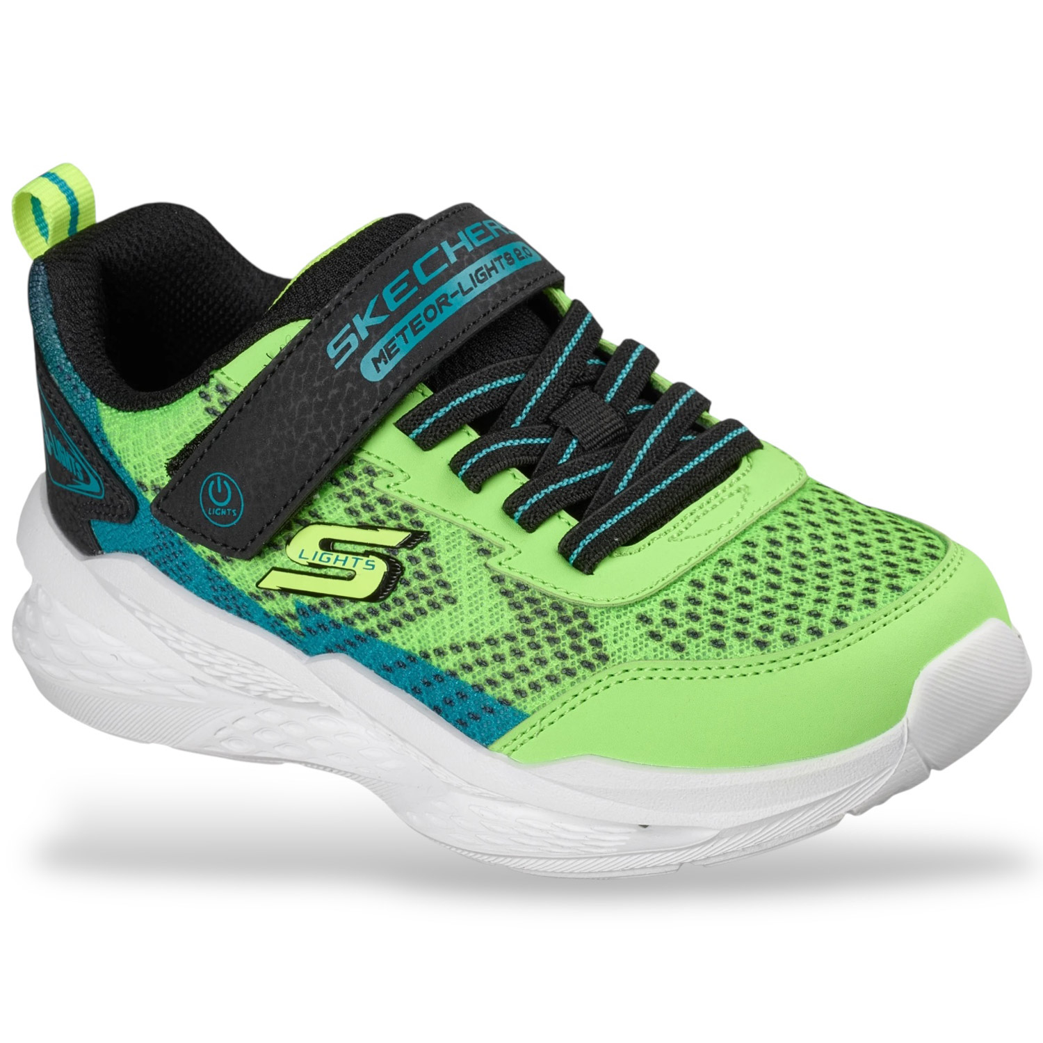 Illumina i tuoi passi con lo stile sportivo e il comfort di Skechers S Lights: Meteor-Lights. Questo modello con lacci elasticizzati presenta una tomaia in mesh e materiale tecnico con una chiusura Skechers Adaptive Closure, nonché un'allegra intersuola luminosa. Possibilità di spegnere le luci tramite pulsante sul cinturino.