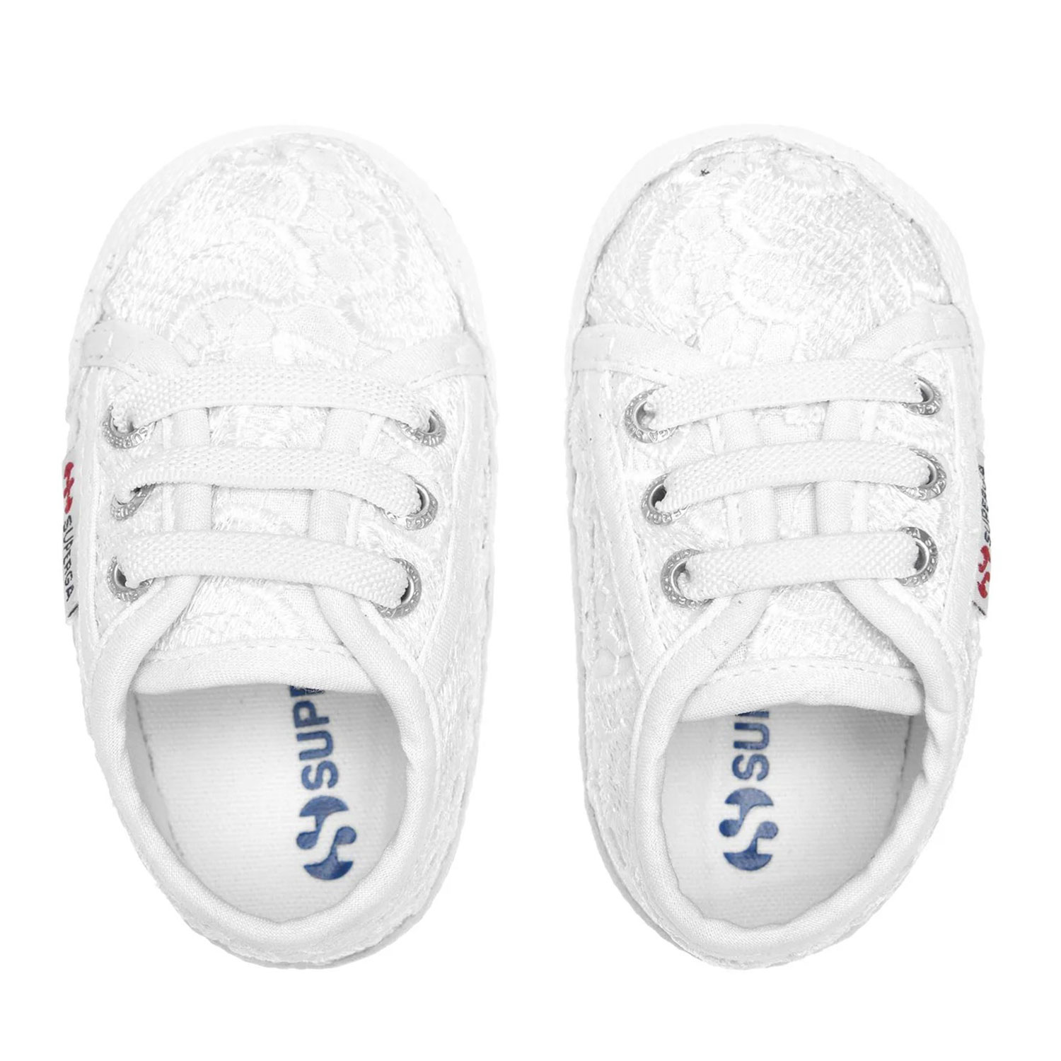 Tutto lo stile Superga già dai primi passi. Questa sneaker 2750 in versione baby riprende le linee iconiche del modello classico e le reinventa con una preziosa tomaia in pizzo macramé. Rifinita con suola in cotone imbottito e chiusura con lacci elastici per una calzata comoda e veloce.