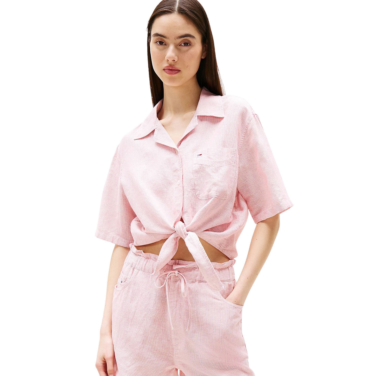 Camicia crop relaxed fit a maniche corte da donna