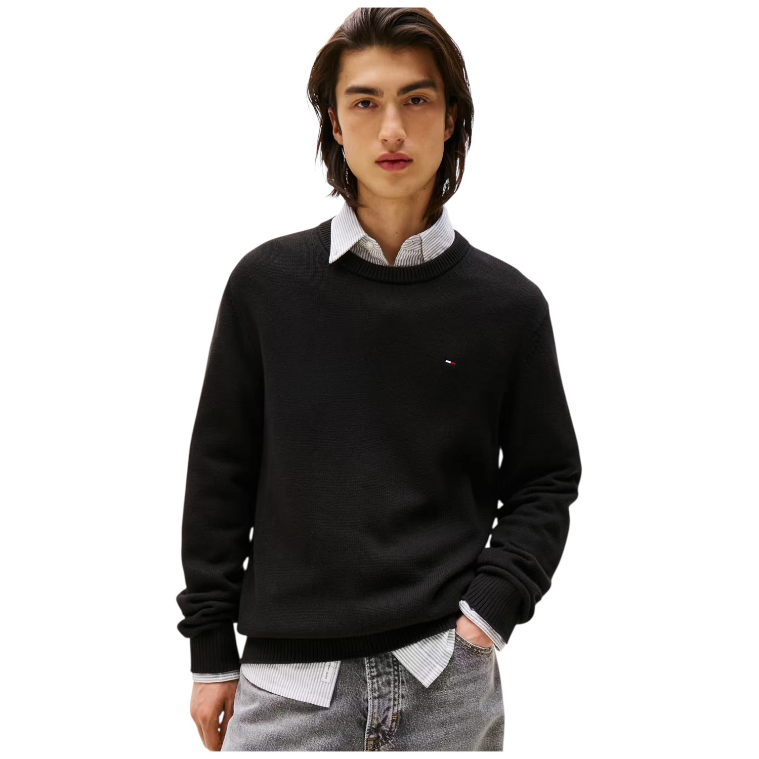 Il versatile maglione slim fit è realizzato in puro cotone con un'essenziale scollatura rotonda, per un look intramontabile.