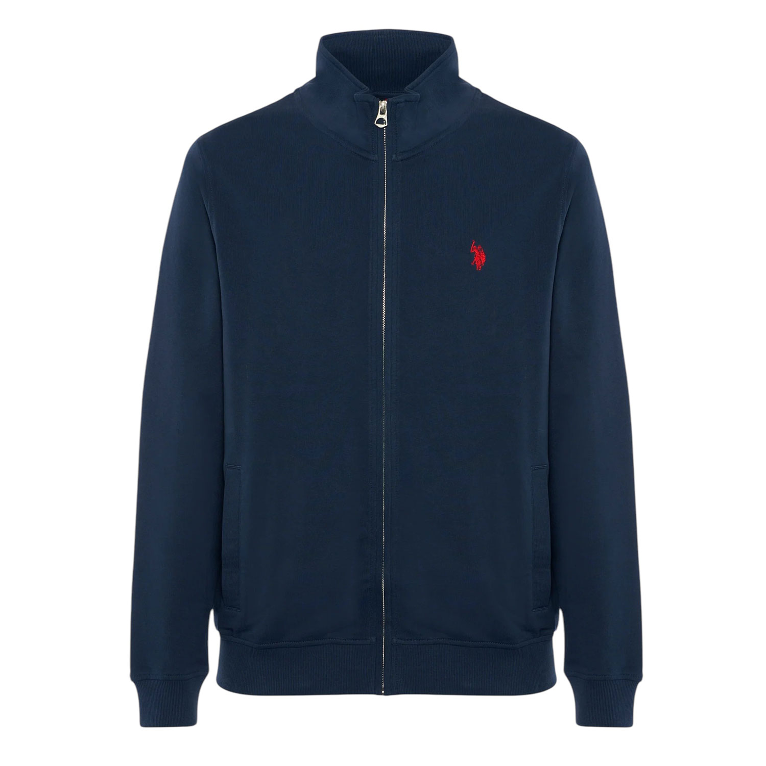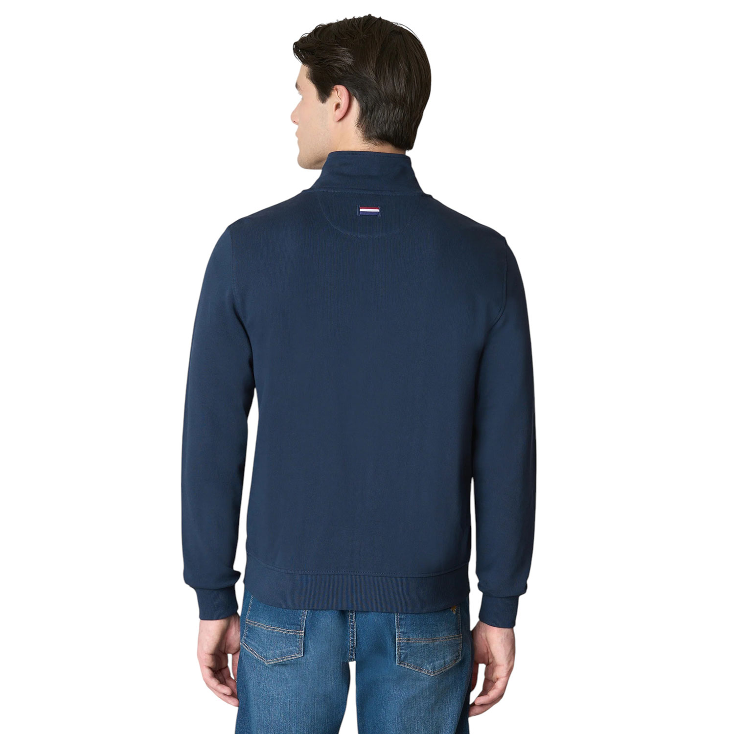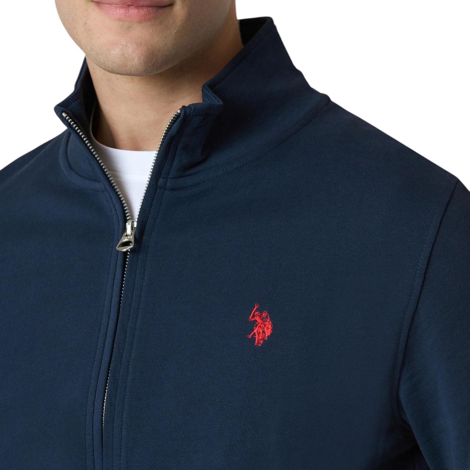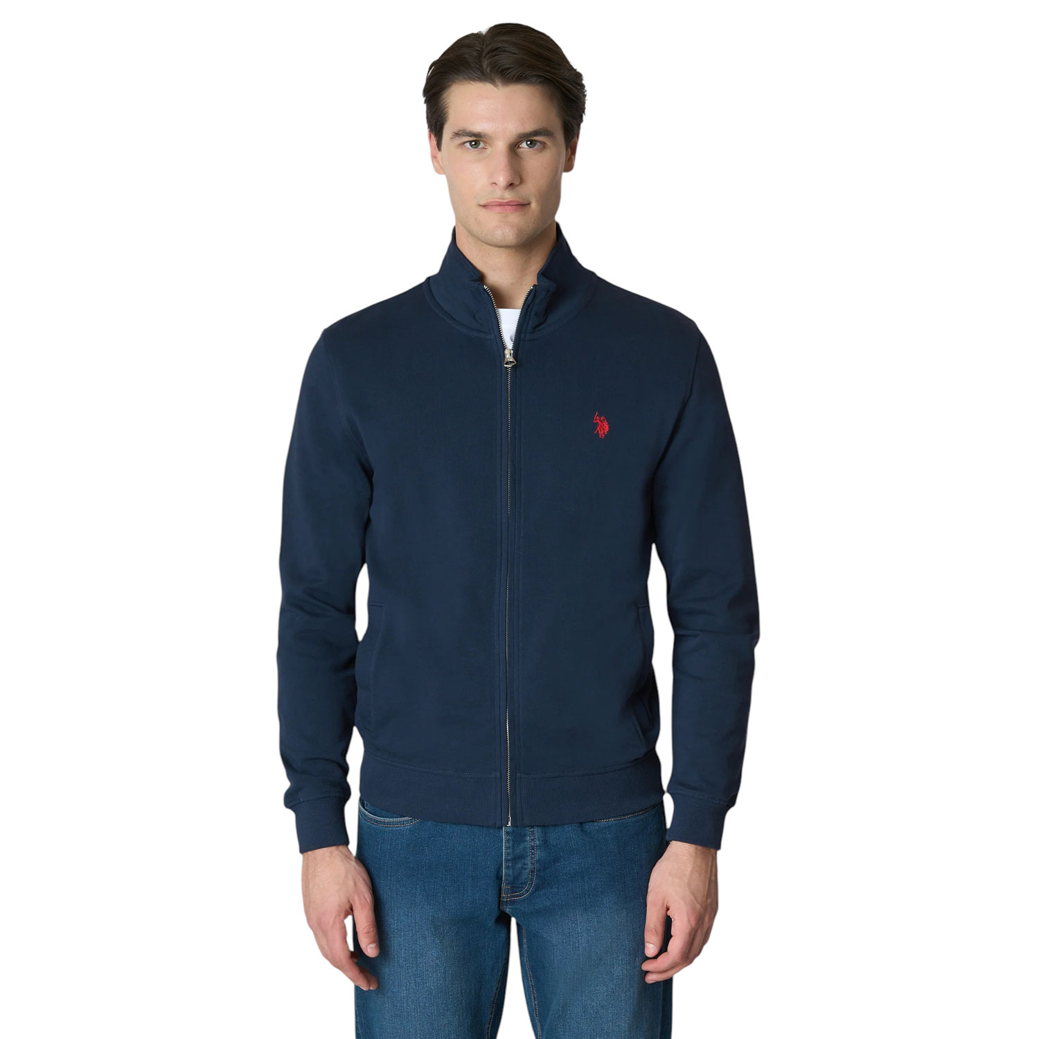 Felpa da uomo a collo alto full zip in cotone. I polsini e l'orlo a coste conferiscono maggiore adattabilità. Le due tasche laterali regalano utilità e praticità al capo.Completano il look il logo Double Horseman lato cuore ed il dettaglio con i colori rappresentativi del brand sul retro vicino al collo.