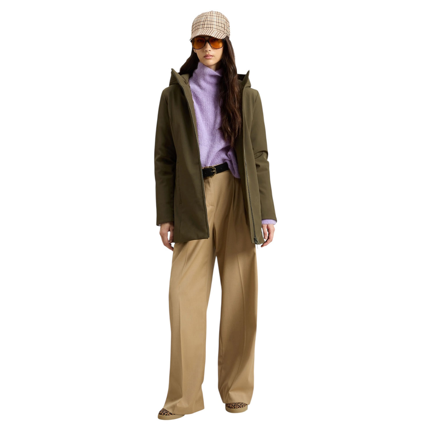 Un design iconico dalle linee contemporanee: il Firth Parka unisce leleganza della tradizione Woolrich a un tocco di femminilità, grazie alla silhouette slanciata valorizzata dalla coulisse interna regolabile in vita. Realizzato in Tech Softshell, un tessuto resistente allacqua e antivento, è imbottito in piuma d'anatra con una trapuntatura Chevron all'interno. È dotato di cappuccio e collo alto per una protezione ottimale, presenta tasche a filetto, una comoda tasca interna con zip, polsini a costine e unetichetta applicata lateralmente.